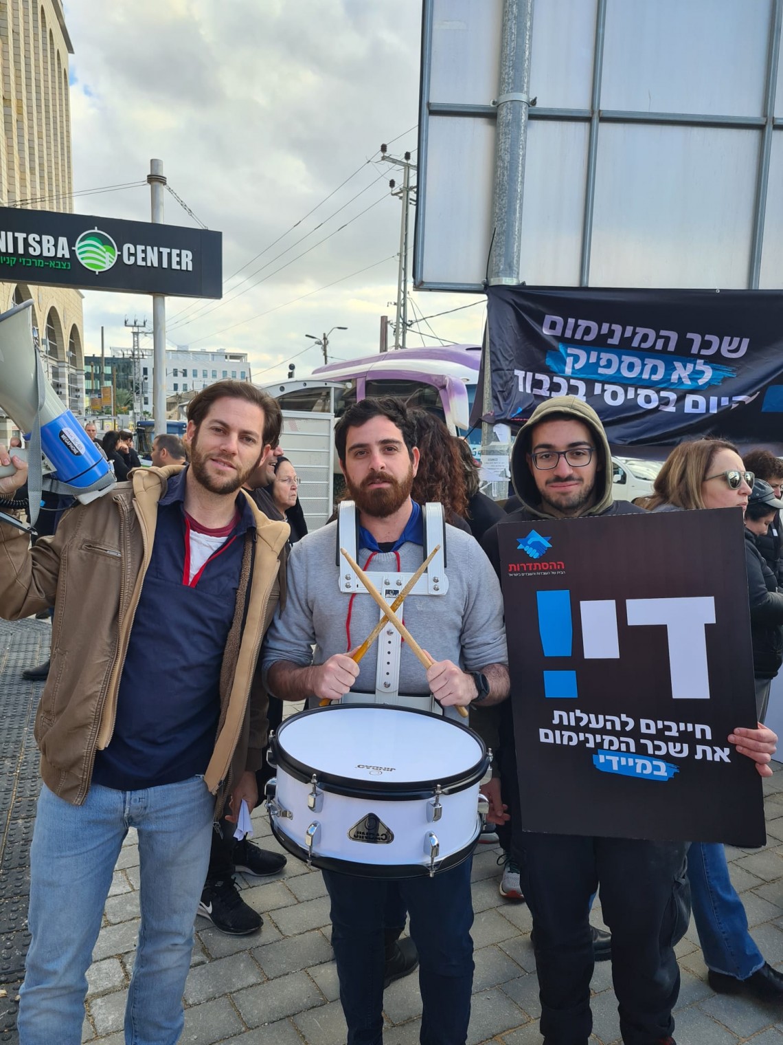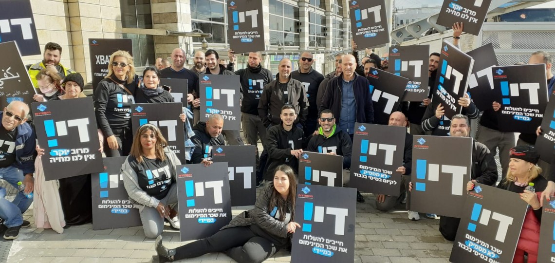 המפגינים לוו בנציגי ההסתדרות במרחב ובאנשי אגף ההתאגדות, והניפו שלטים שעליהם נכתב בין היתר "די! יקר לנו פה", "די! שכר המינימום לא מספיק לקיום מינימלי", "די! נמאס לנו לשלם את המחיר", ו"די! חייבים לדאוג להעלאת קצבת הזקנה".