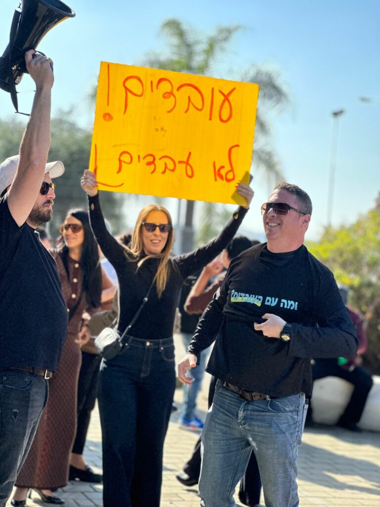 יו"ר ועד הפעולה בחברת פריסבי, לימור סגלוביץ': "נבהיר להנהלה שיושבת במגדל השן שנפסיק להיות שקופים ולא נוותר עד שנגיע להסכם קיבוצי. תודה לעובדים שמחזקים אותנו ונותנים לנו כוח להמשיך במאבק".