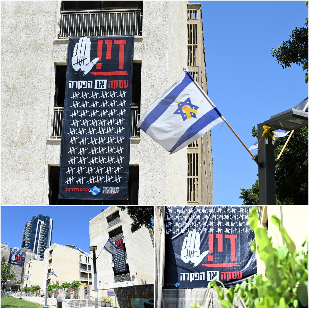 בשיתוף מטה משפחות החטופים המלווה ע"י ההסתדרות מזה כעשרה חודשים, נתלו במהלך היום עשרות שלטים בכל הארץ, הקוראים לעסקה לשחרור החטופות והחטופים. השלטים נתלו בבית ההסתדרות בתל-אביב, במרחבי ובסניפי ההסתדרות מצפון ועד דרום, וכן בבית הנוער העובד והלומד וברשת "עמל".